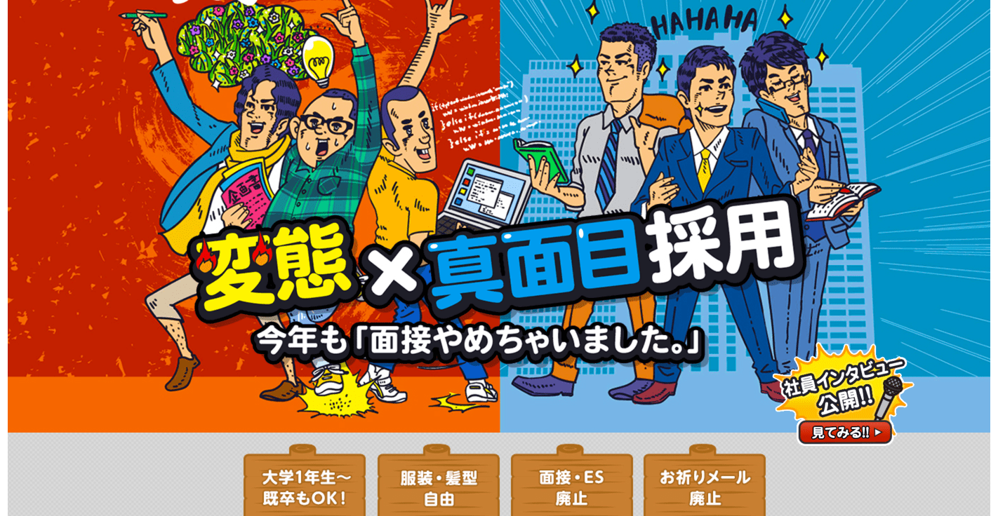 新卒採用ページのポップさ!楽しさ全開ですね!