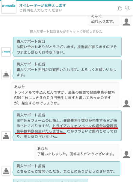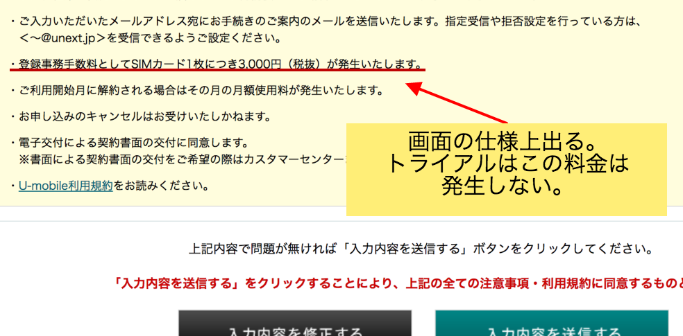 ・契約の際に表示される、事務手数料発生についての文章はトライアルの場合気にしなくて良い