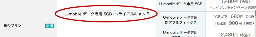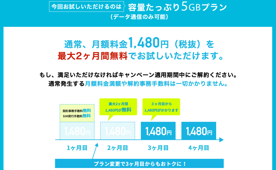 ・データ通信SIM 5GBプラン1480円(税抜)のトライアル